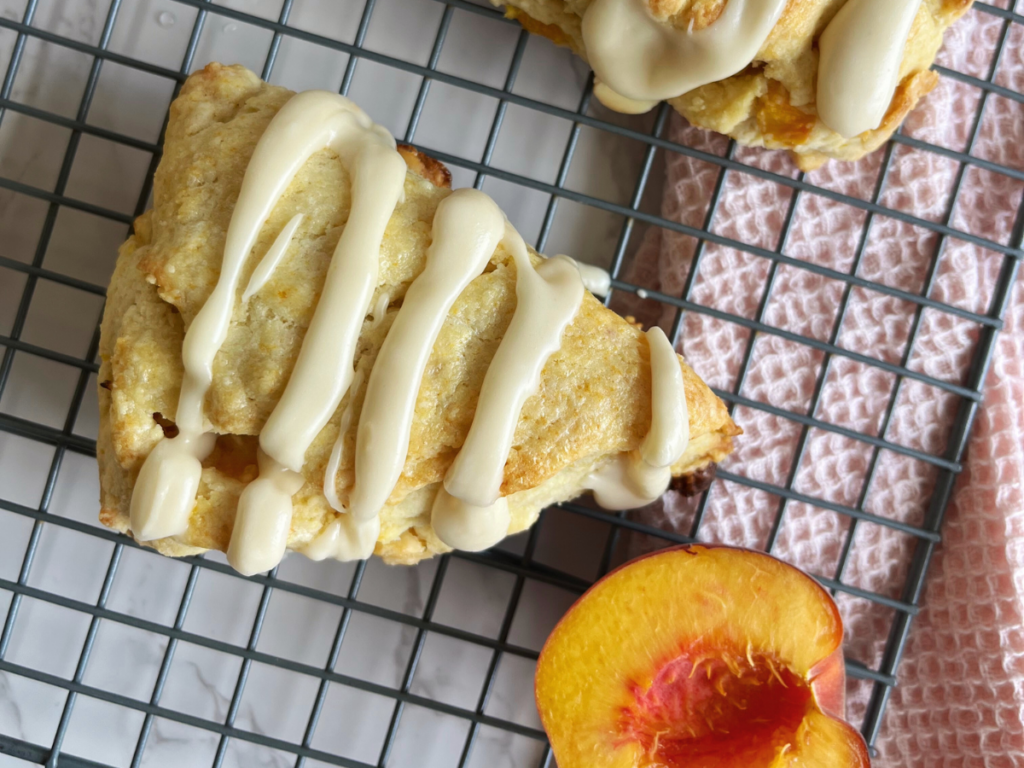 - I usually finish these scones with a simple glaze, but it’s completely optional. They’re good on their own, but the glaze adds a little extra sweetness and ties the peach flavor together nicely.